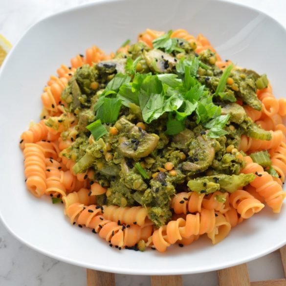Bazyliowe pesto z soczewicą i makaronem