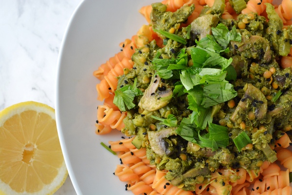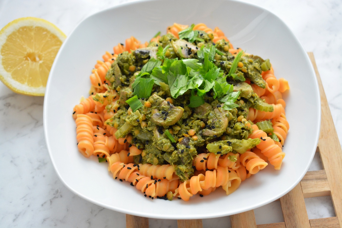 Pesto bazyliowe z soczewicą i makaronem, idealne na obiad!