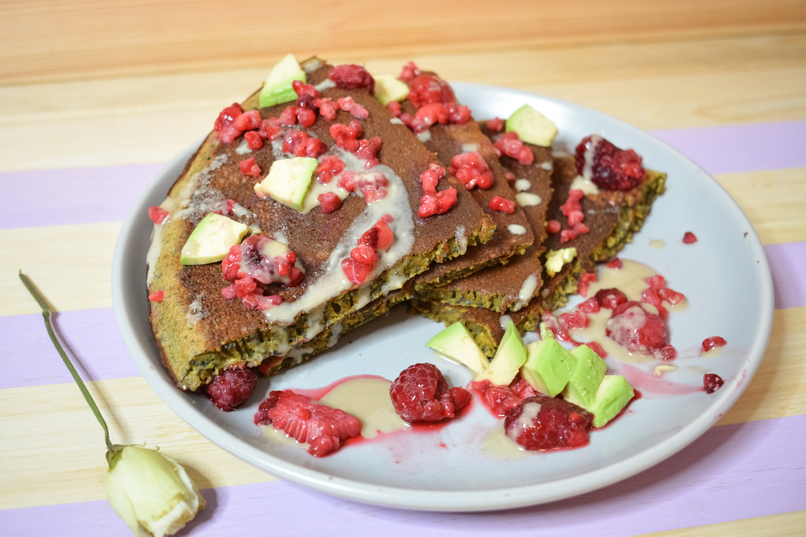 Puszysty i smakowity bezglutenowy placek z makiem w towarzystwie malin i awokado