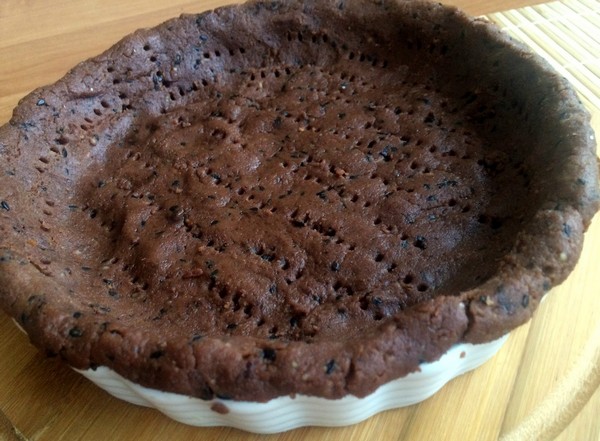Ciasto: Wykonanie jest bardzo proste. Wystarczy orzeszki ziemne lekko podprażyć na patelni i pokruszyć na malutkie kawałki. Siemię lniane zmiksować na drobny proszek. Następnie wszystkie składniki dokładnie wymieszać i ugnieść ciasto. Jeżeli ciasto okaże się być zbyt kruche dodaj przegotowanej wody lub mleka roślinnego. Gdy ciasto będzie gotowe zawiń je w folię i schowaj do zamrażalnika.