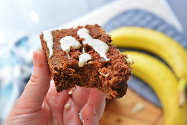 Ten wegański chlebek bananowy jest normalnie niesamowity! Wielokrotnie uratował mi życie kiedy miałam ogromną ochotę na coś słodkiego i zarazem szybkiego w wykonaniu! Tradycyjnie – nie znajdziecie tutaj glutenu, mleka i jaj, więc idealnie spisze się dla alergików i dla osób na dietach eliminacyjnych. Mało tego… mój mąż, który wszystko może jeść twierdzi, że jest to najlepsze „ciasto”/chlebek bananowy jaki jadł! 🙂 Jedno jest pewne, gdy wykonacie w swoich domach ten przepis każdy z domowników będzie się zajadał! Idealnie smakuje polane tahini i z domową konfiturą. Koniecznie dajcie mi znać czy skorzystaliście z mojego przepisu i dzielcie się swoimi zdjęciami. Jest mi niesamowicie miło jak mnie oznaczacie i widzę, że moje przepisy przynoszą Wam wiele radości i je lubicie!